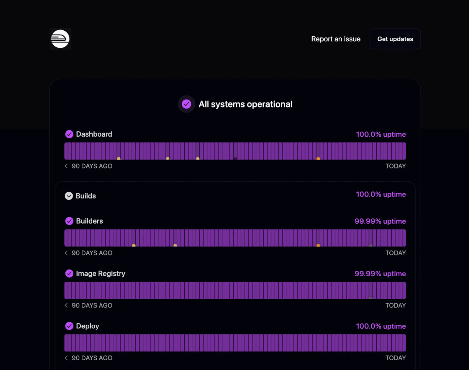 At Instatus, we deliver fast, customizable status pages with real-time monitoring, seamless integrations, and unlimited users at a fraction of the cost. Trusted by companies like Deno and Railway, we help you reduce support tickets, build customer trust, and stay ahead of outages.